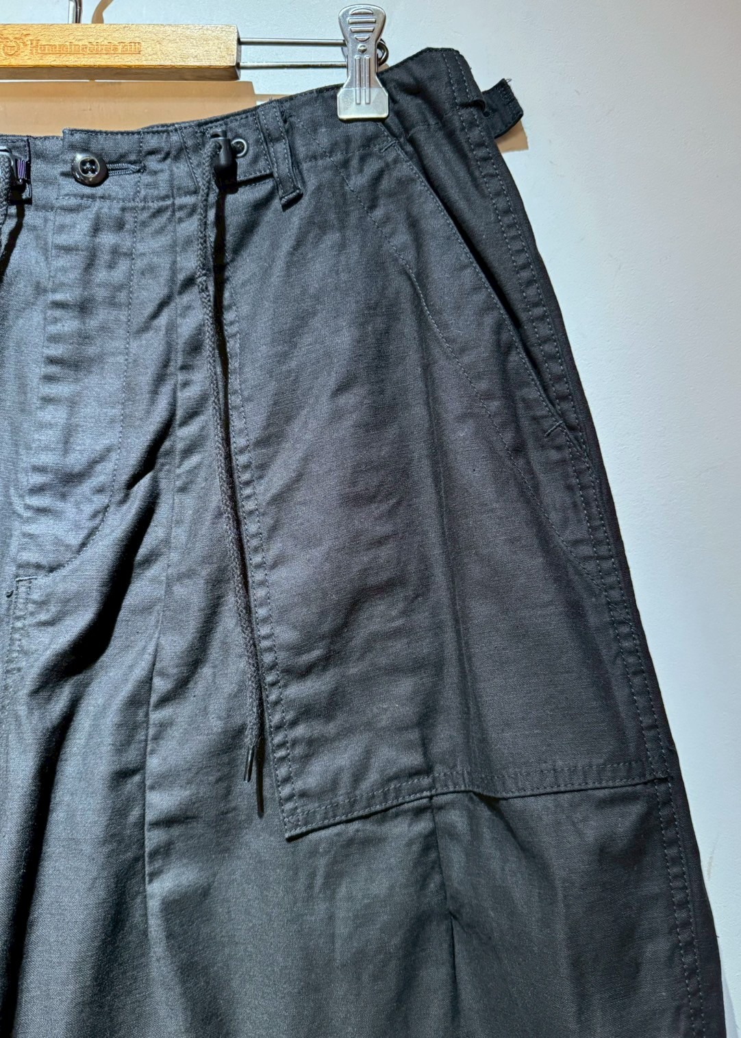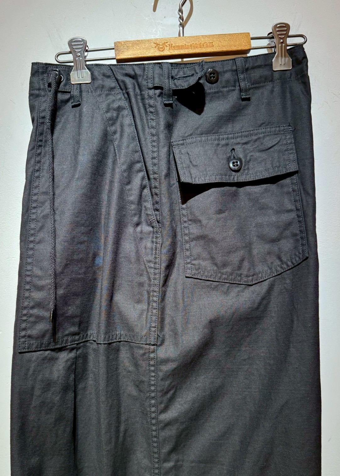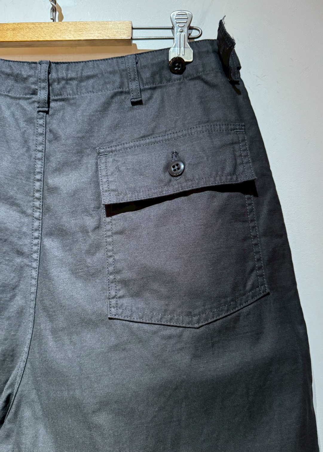 ウエストと裾のダーツ処理によりフロントが大きくふくらんだ独特のシルエットが魅力の人気アイテムH.D. パンツが再入荷。リラックス感のあるシルエットで、開放感のある履き心地も魅力的で す。フロントのL字型のポケットやサイドアジャスターなど、ファティーグパンツのデザインを落とし込んだデザイン。ハリ感のあるコットン・バックサテン素材を使用しています。