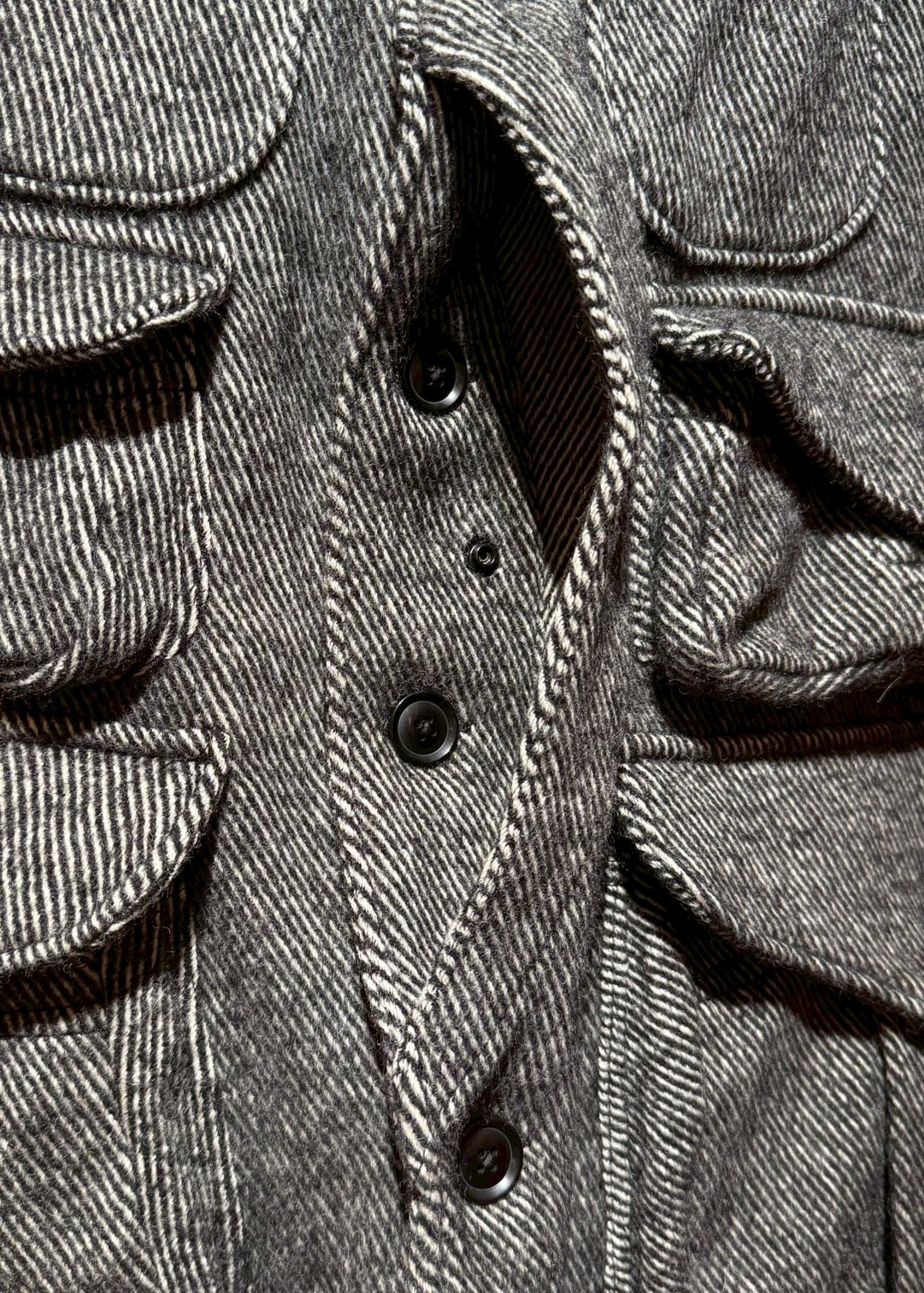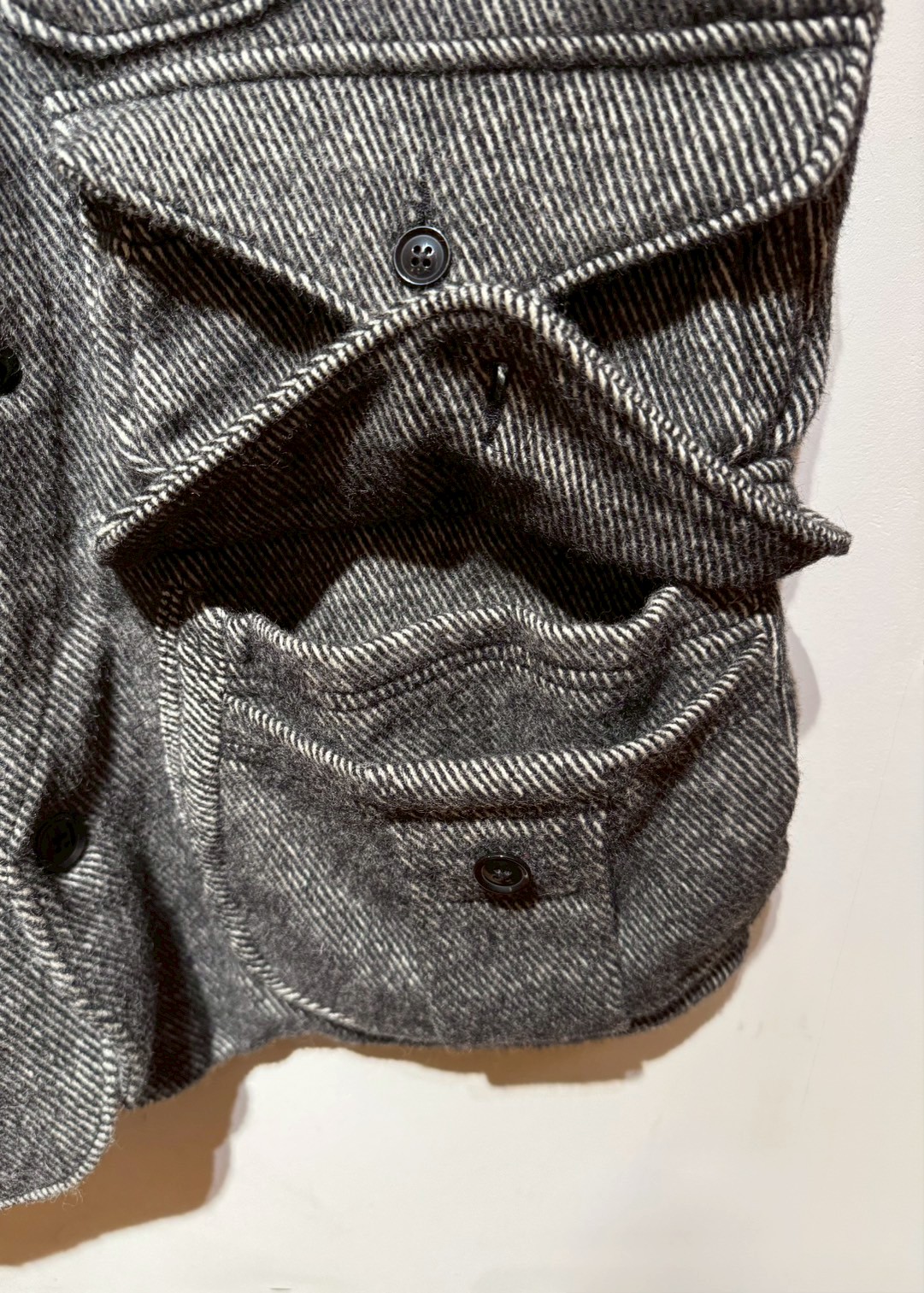 アイテム名のとおりハンティング用としてフロントのゲームポケットやショルダー部分からのタック、 サイドベンツなど実用的なディティールが随所に盛り込まれたプロダクト。