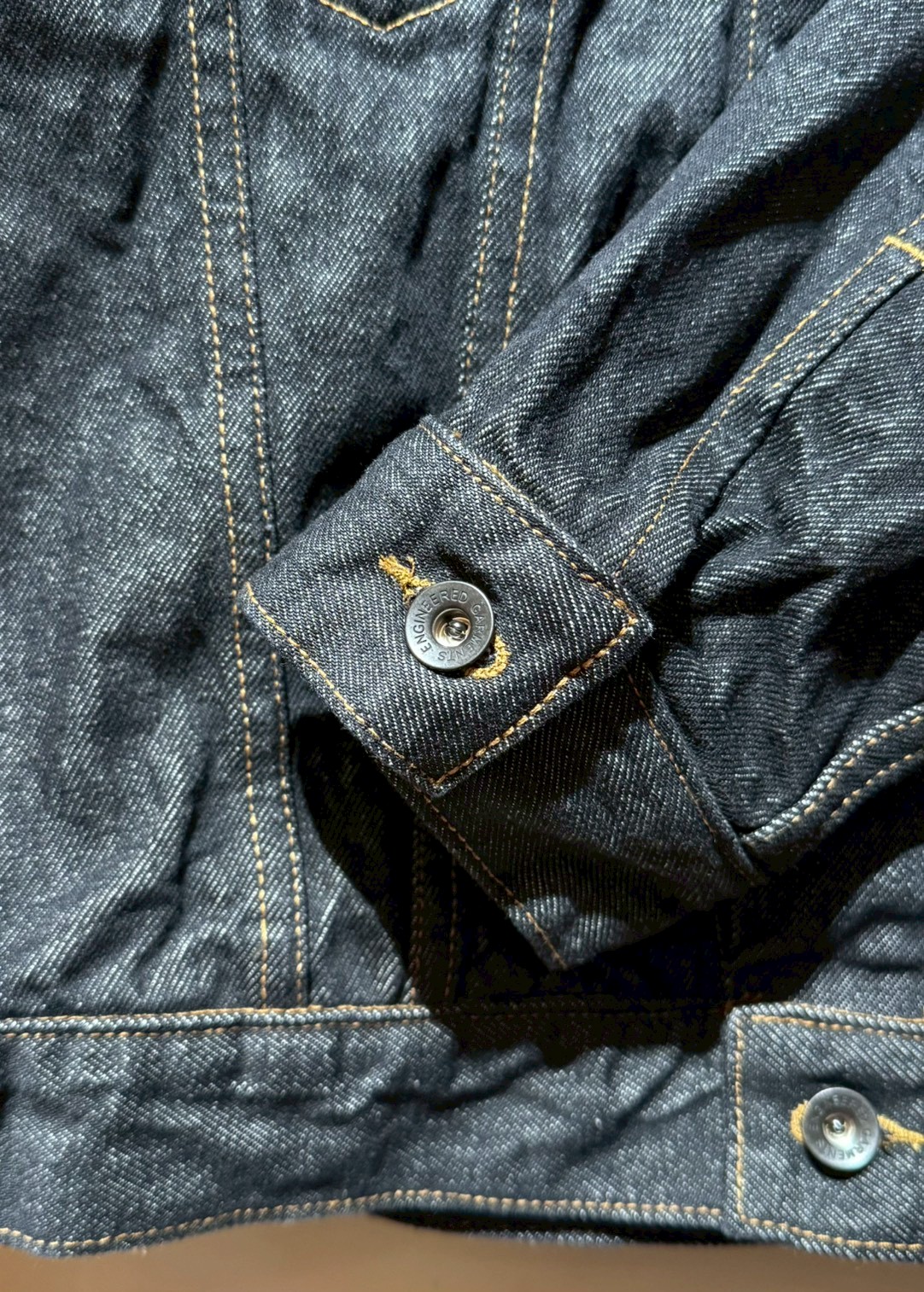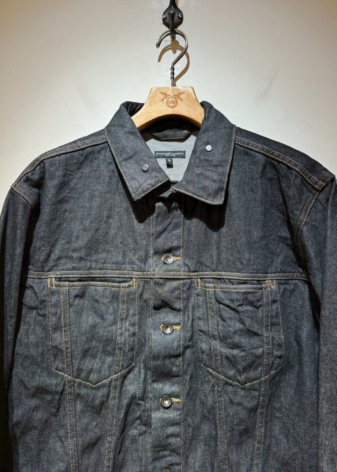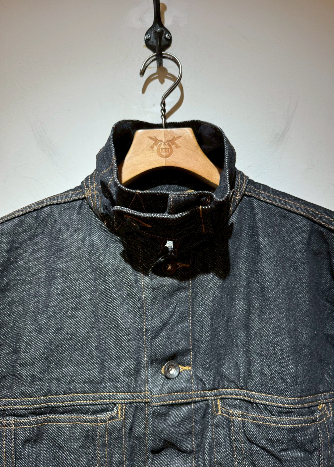 やや短めな丈とスッキリとしたシルエットが特徴のTYPE 5 JEAN JACKET。シンプルなデザインは、シャツやTシャツなどとのレイヤードスタイルにも幅広く対応します。14オンスの程よく重みのあるコーンデニム社製ブラックデニムを採用した、時代やシーズンを超えて着用できる完成度の高い一着です。