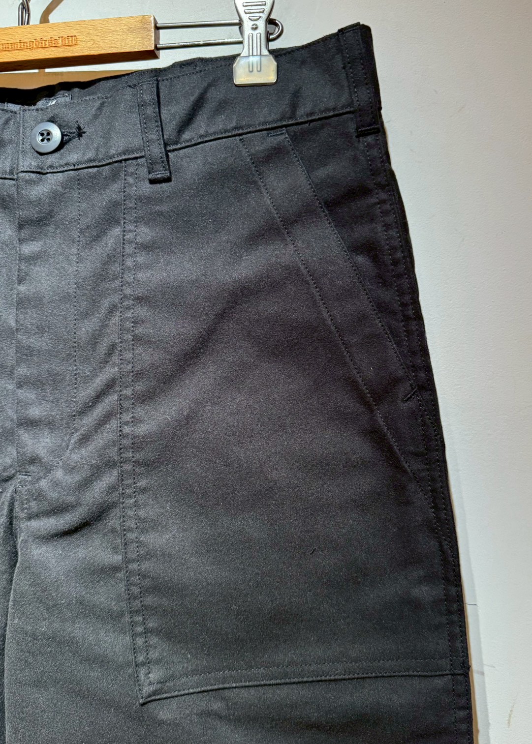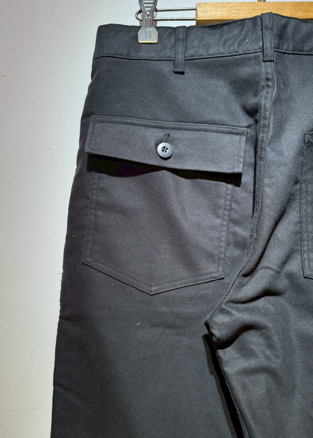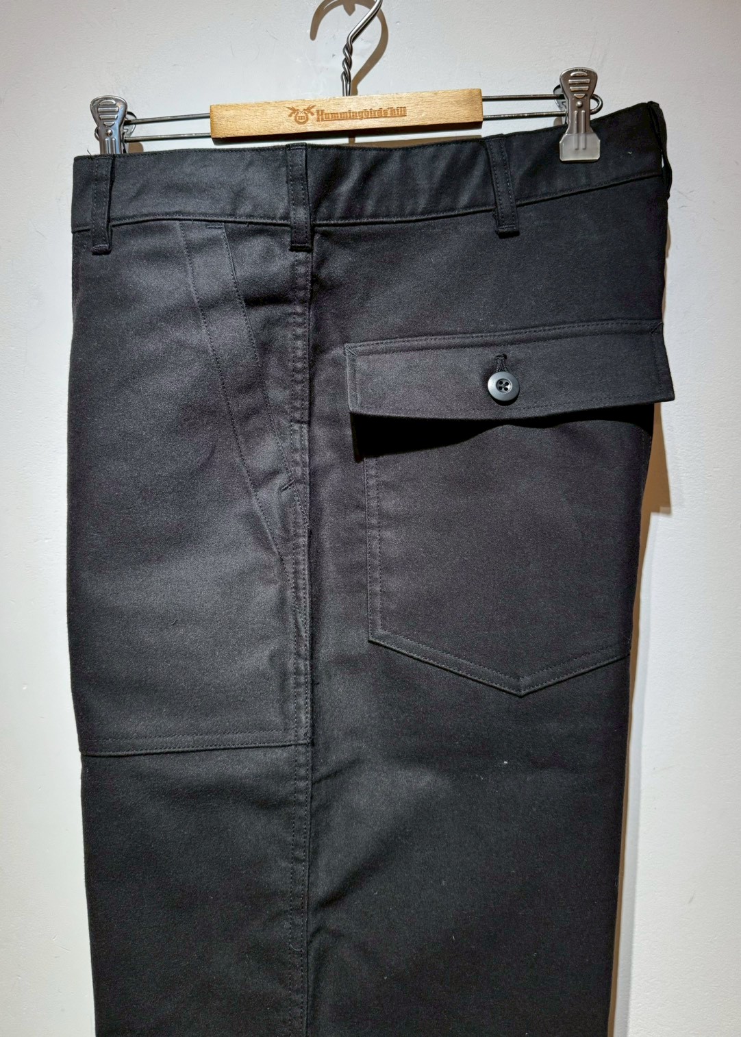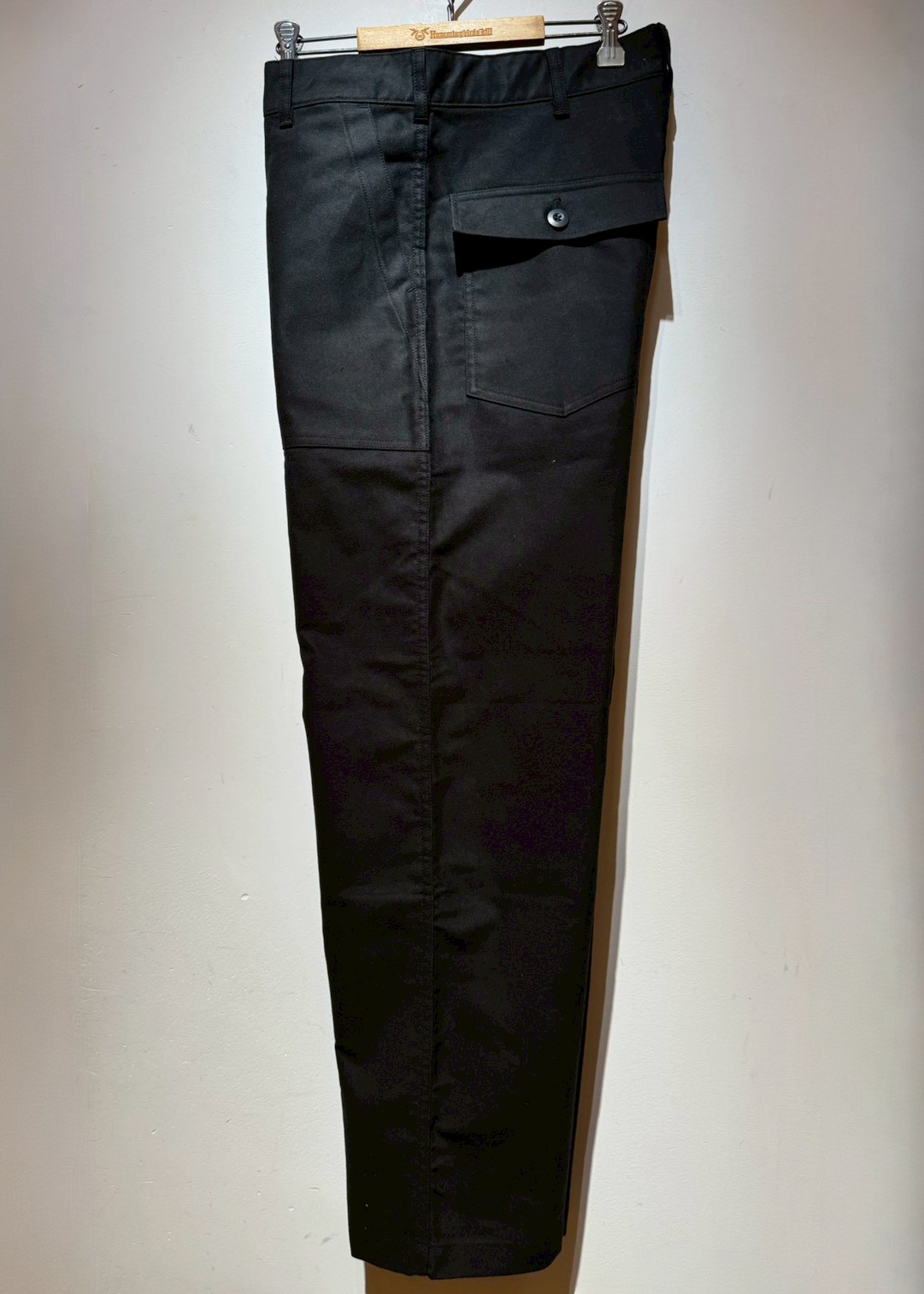 Cotton Moleskin素材を使用した、オリジナルクレイジーワークパンツ。フロント・バック共に、左右非対称のポケットを装備し、ペインターパンツとファティーグパンツを融合したデザインに。ややゆったり目のシルエットになります。