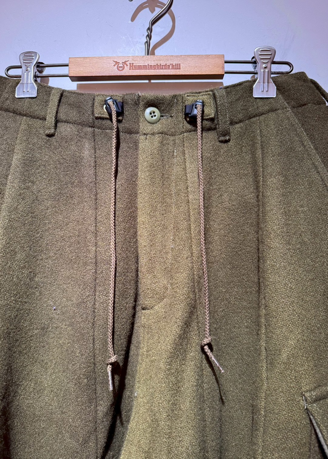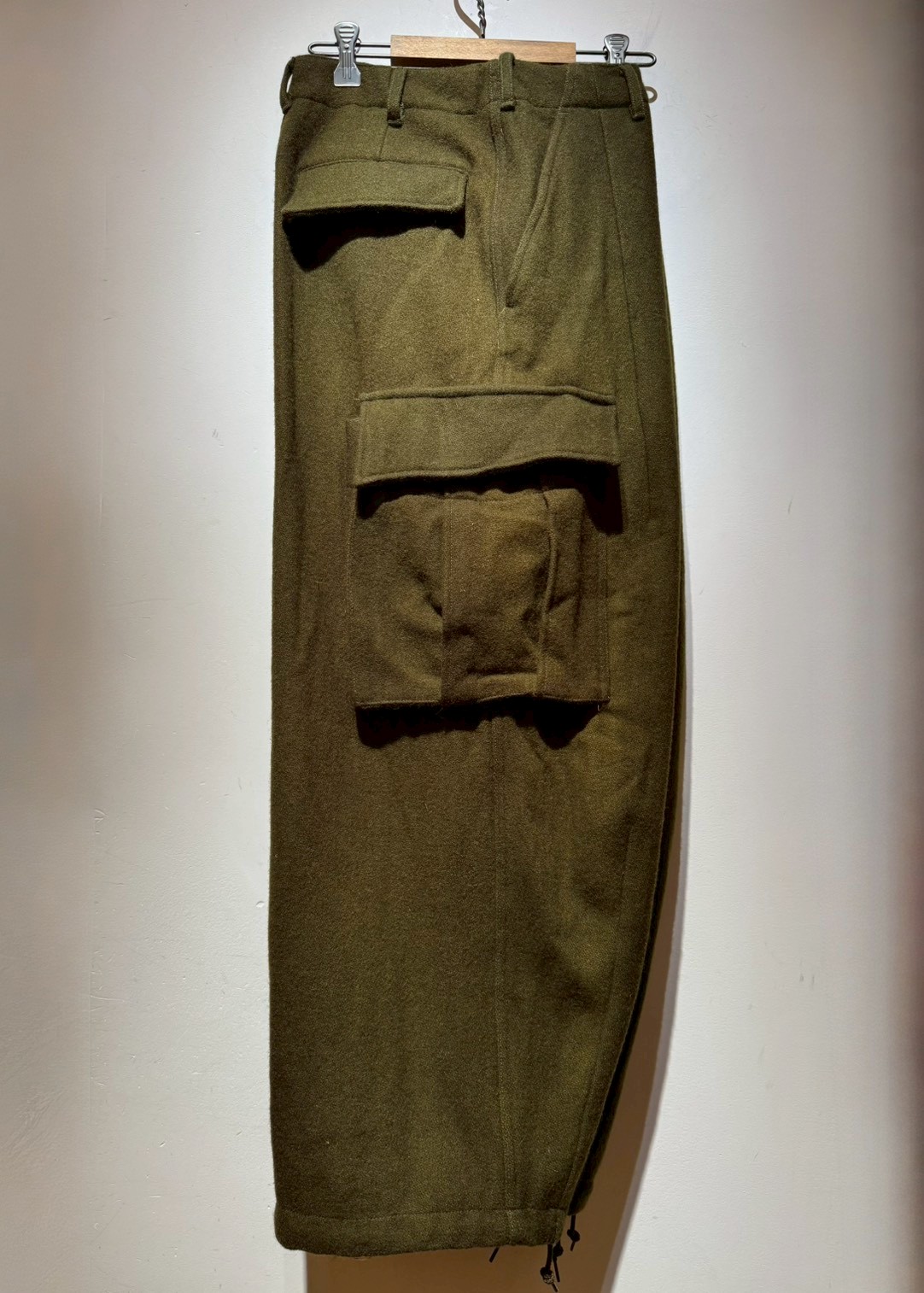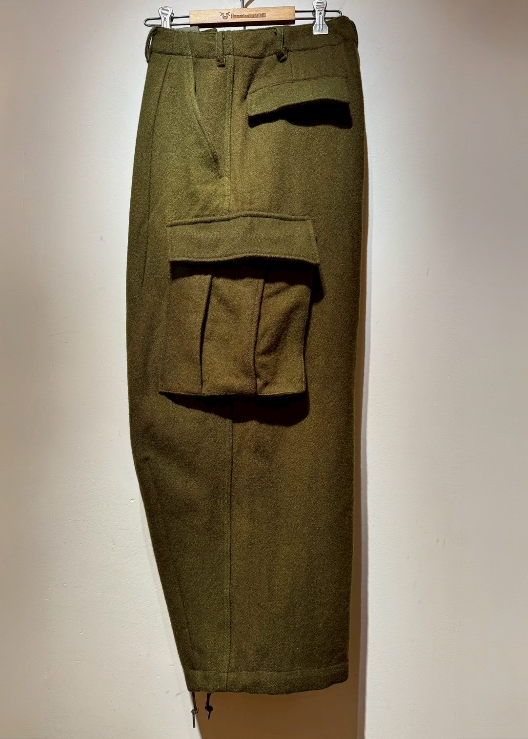 ウエストと裾のダーツ処理によりフロントが大きくふくらんだ独特のシルエットが魅力の人気アイテムH.D. パンツ。リラックス感のあるワイドなシルエットで、締め付けのない開放感のある履き心地も魅力的です。さまざまなデザイン・バリエーションで展開されていますが、サイドポケットによりボリューム感が際立ったBDUパンツのデザインは、シーズンを問わずに活躍する一本です。ムラ染めならではの独特な風合いが魅力的なファブリックを使用。