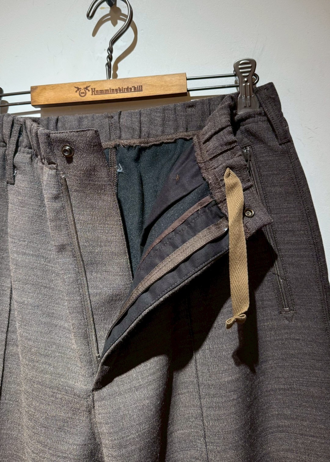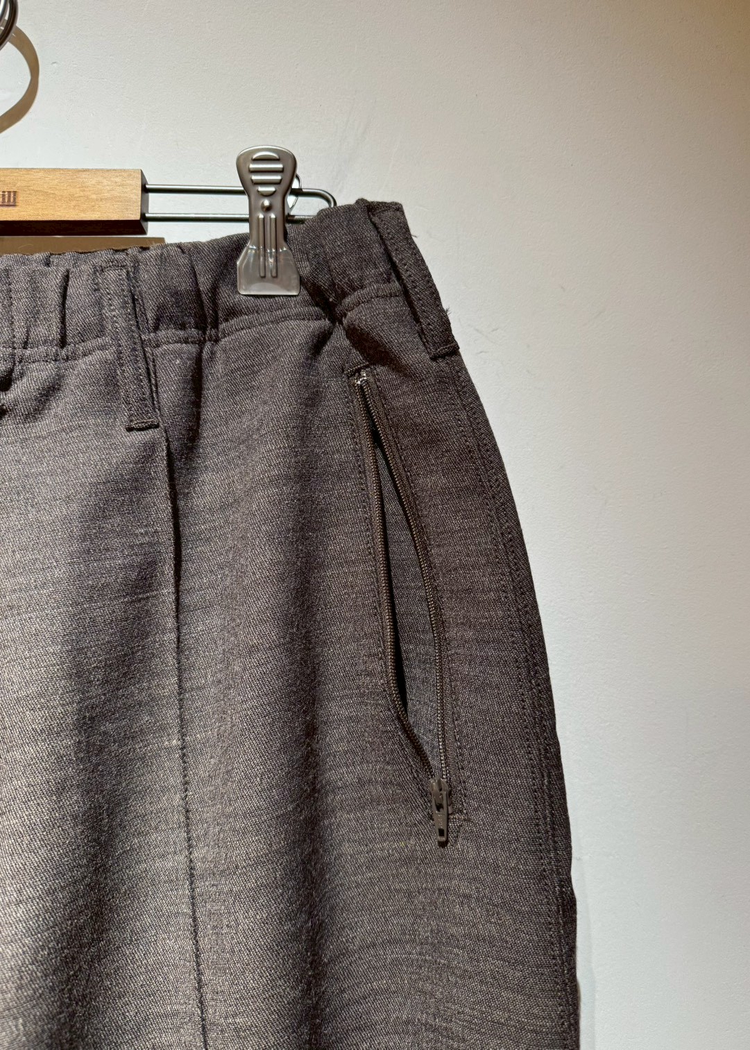 ストリング仕様のウエスト、ワイドシルエット、スポーティなジップポケットなど、リラックス感のある力の抜けたデザインが特徴的なジョグパンツ。裾はドローコードで調整が可能です。全体的にカジュアルな雰囲気が漂う一本ですが、両脚にセンターシームが施されることで、どこかスタイリッシュな表情も引き出されています。