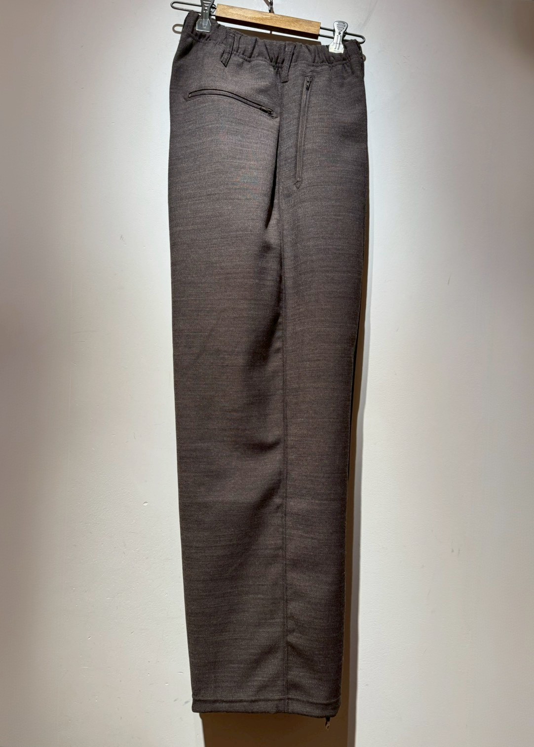 ストリング仕様のウエスト、ワイドシルエット、スポーティなジップポケットなど、リラックス感のある力の抜けたデザインが特徴的なジョグパンツ。裾はドローコードで調整が可能です。全体的にカジュアルな雰囲気が漂う一本ですが、両脚にセンターシームが施されることで、どこかスタイリッシュな表情も引き出されています。