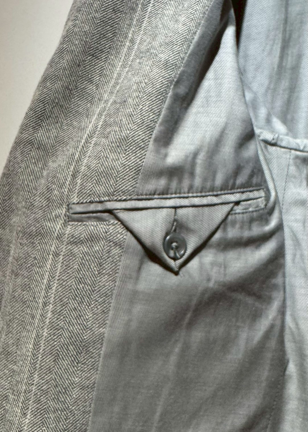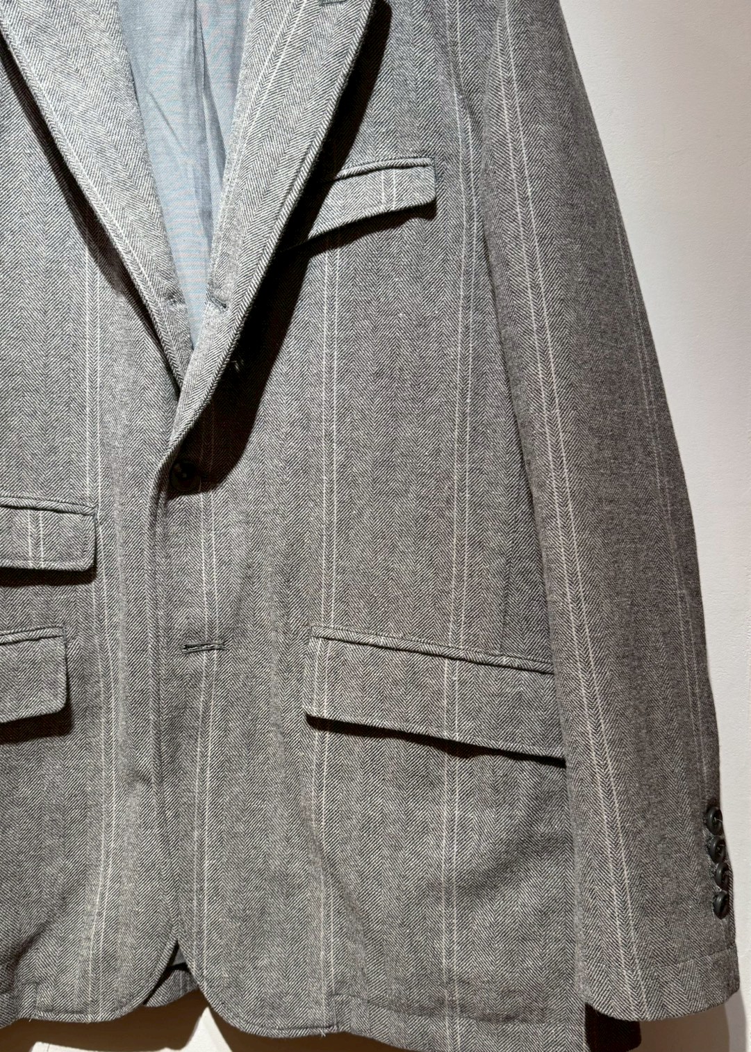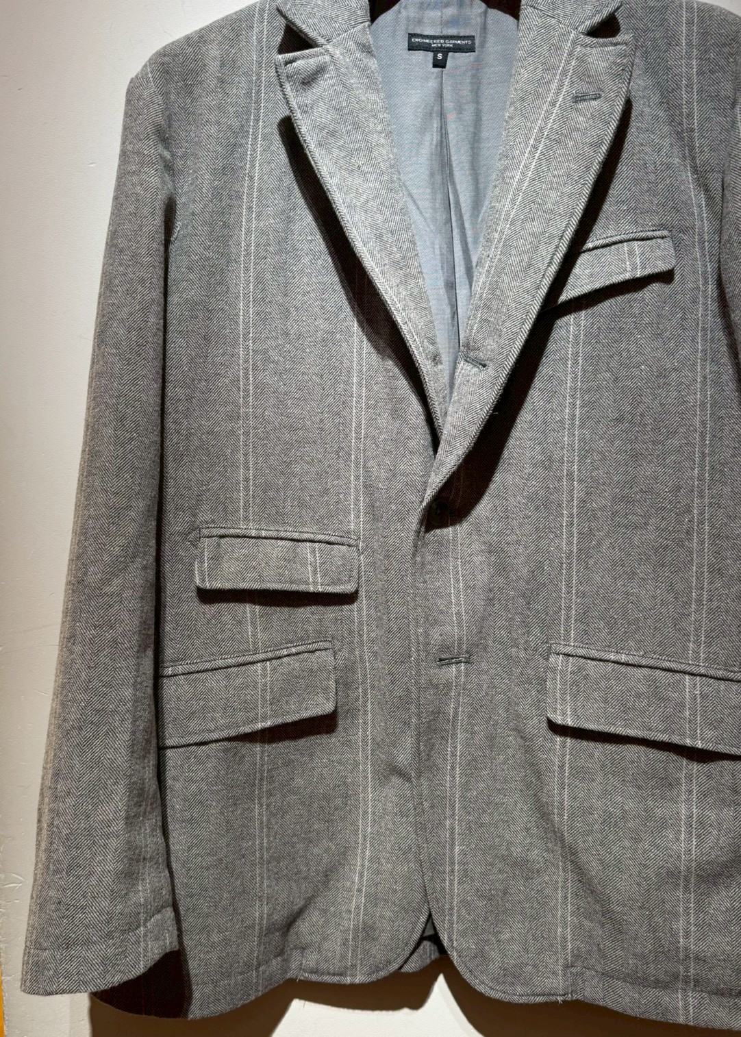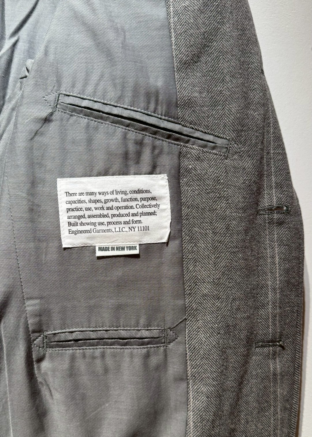 〈ENGINEERED GARMENTS〉の定番で人気のアンドーバージャケット。3ボタンにチェンジポケットなどのトラディショナルな仕様で根強い人気を誇るアイテムです。フロントにはダーツが取られており、身体に沿って自然にシェイプしたシルエットが特徴。ポケットはやや内側に傾けてセットされ、全体的に引き締まった表情となっています。製品には洗いがかけられており、程よく力の抜けたムードが漂う仕上がりとなっています