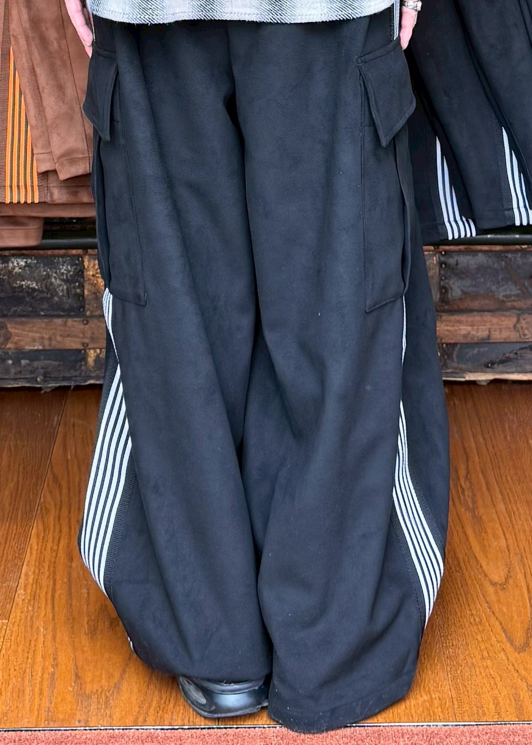 Ssize ウエスト: 80.0~ ㎝ 股上: 42.5 ㎝ 股下: 68.0 ㎝ 総丈: 105.0 ㎝ 渡り幅: 41.0 ㎝ 裾幅: 31.0 ㎝