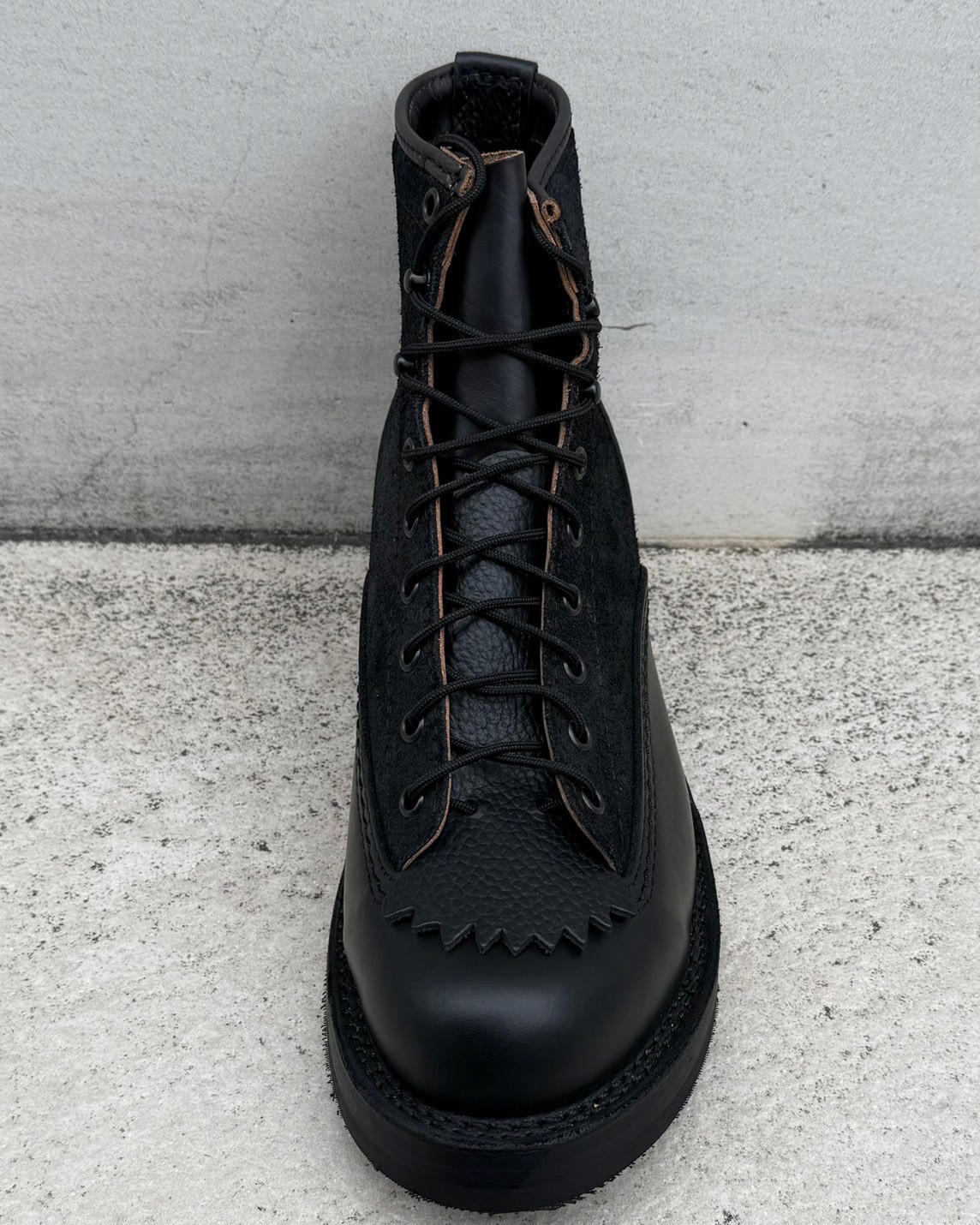 5種類の異なるレザーを使用し、ステッチ、アイレット、ソールに至るまでALL BLACKに仕上げた逸品です。