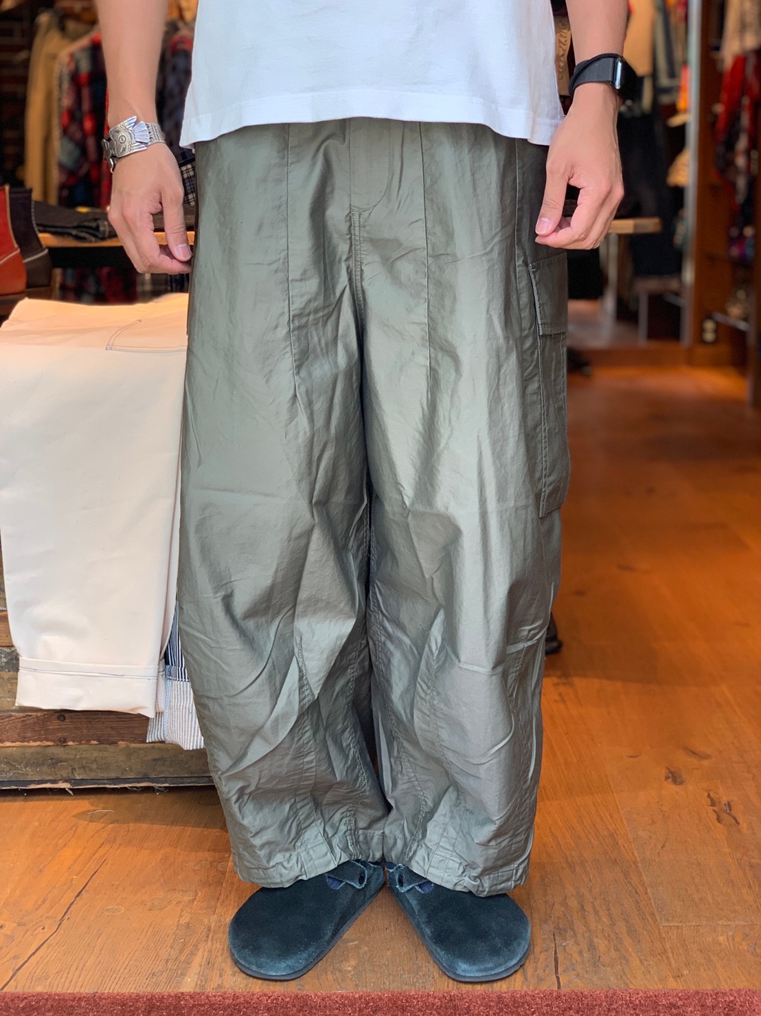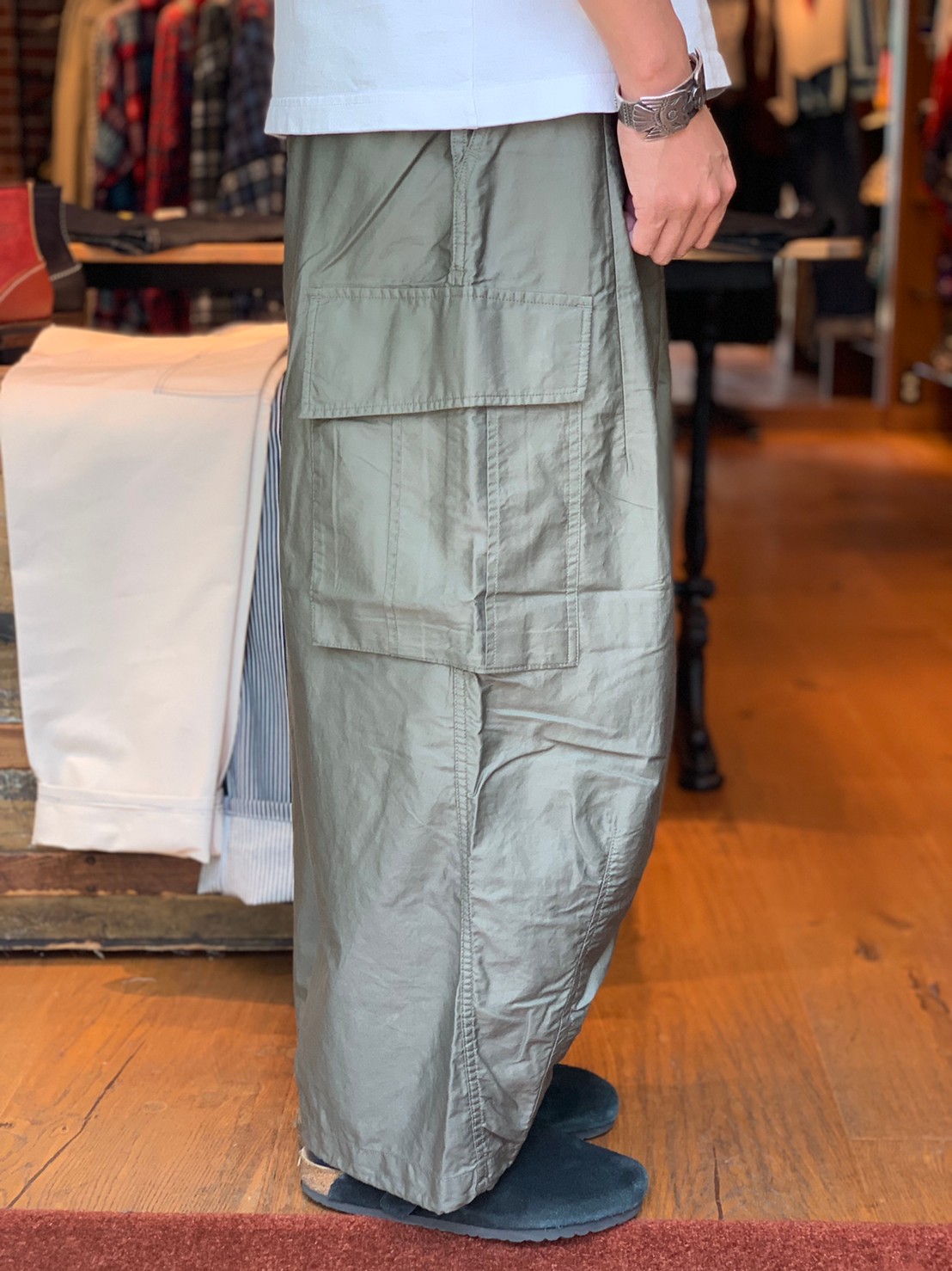 ウエストと裾のダーツ処理によってフロントが大きく膨らんだ独特のシルエットが魅力の人気アイテムH.D.パンツ。リラックス感のあるシルエット、開放感のある履き心地の良さも魅力です。サイドポケットによりボリューム感が際立ったBDUパンツのデザインは、シーズンを問わずに活躍する一本です。