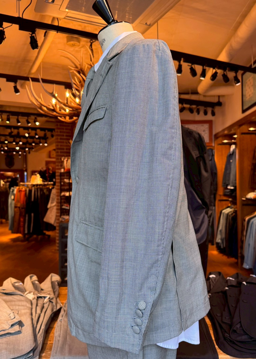 〈ENGINEERED GARMENTS〉の定番で人気の高いアンドーバージャケット。3ボタンにチェンジポケットなどのトラディショナルな仕様で根強い人気を誇るアイテムです。フロントにはダーツが取られており、身体に沿って自然にシェイプしたシルエットが特徴で、バックはサイドベンツの仕様。ポケットはやや内側に傾けてセットされ、全体的に引き締まった表情となっています。製品には洗いがかけられており、程よく力の抜けたムードが漂う仕上がりです。
