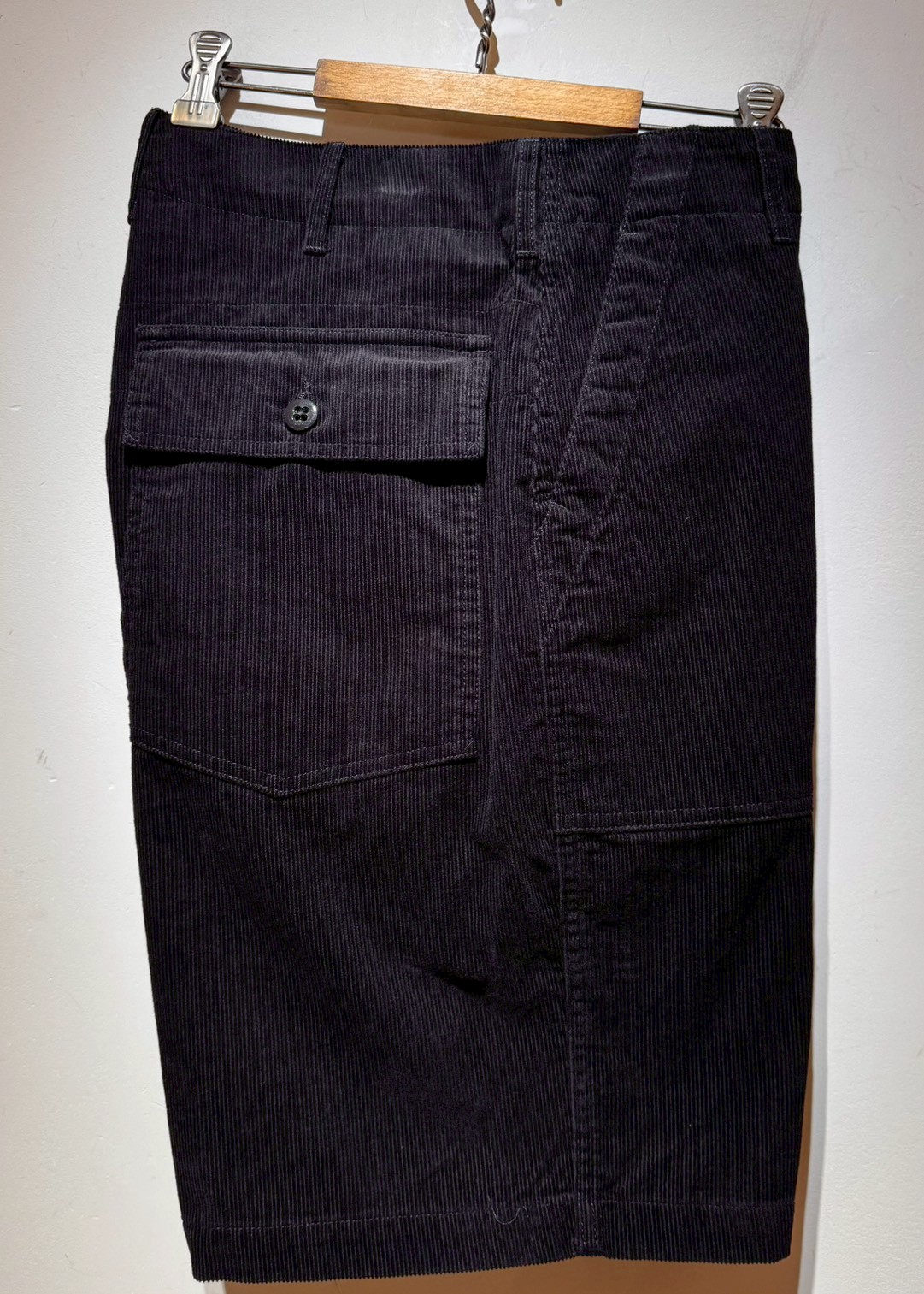 〈ENGINEERED GARMENTS〉の定番ファティーグパンツをショーツにアレンジした春夏の人気アイテム。ワイドな幅とやや短めのレングスによるゆったりとしたシルエットと、フロントのL字型のポケットデザインが特徴です。ウエストにはベルトループのほかドローコードも付属し、リラックス感のある雰囲気。左のポケット脇にはジップポケットが隠れるように備えられています。コーデュロイ素材を使用した、〈EG〉の春夏コレクションでは欠かせないアイテムです。