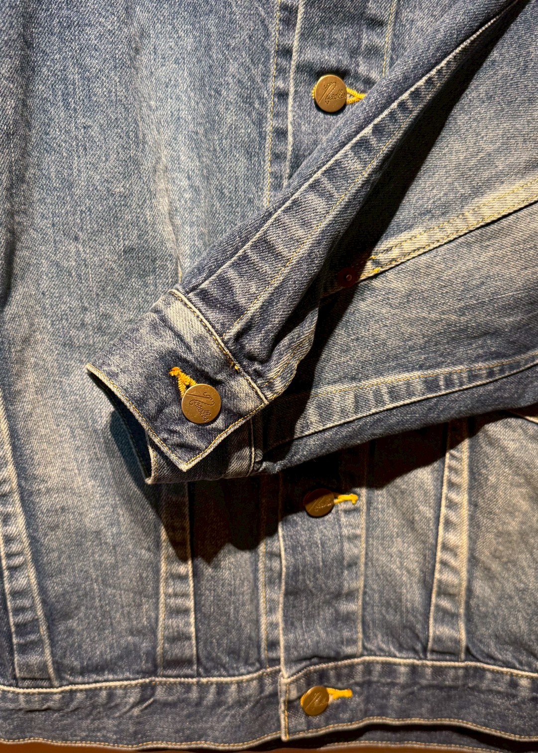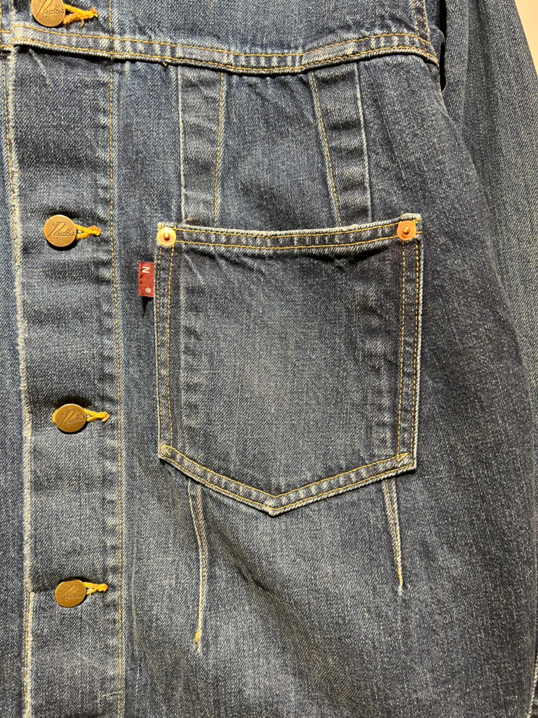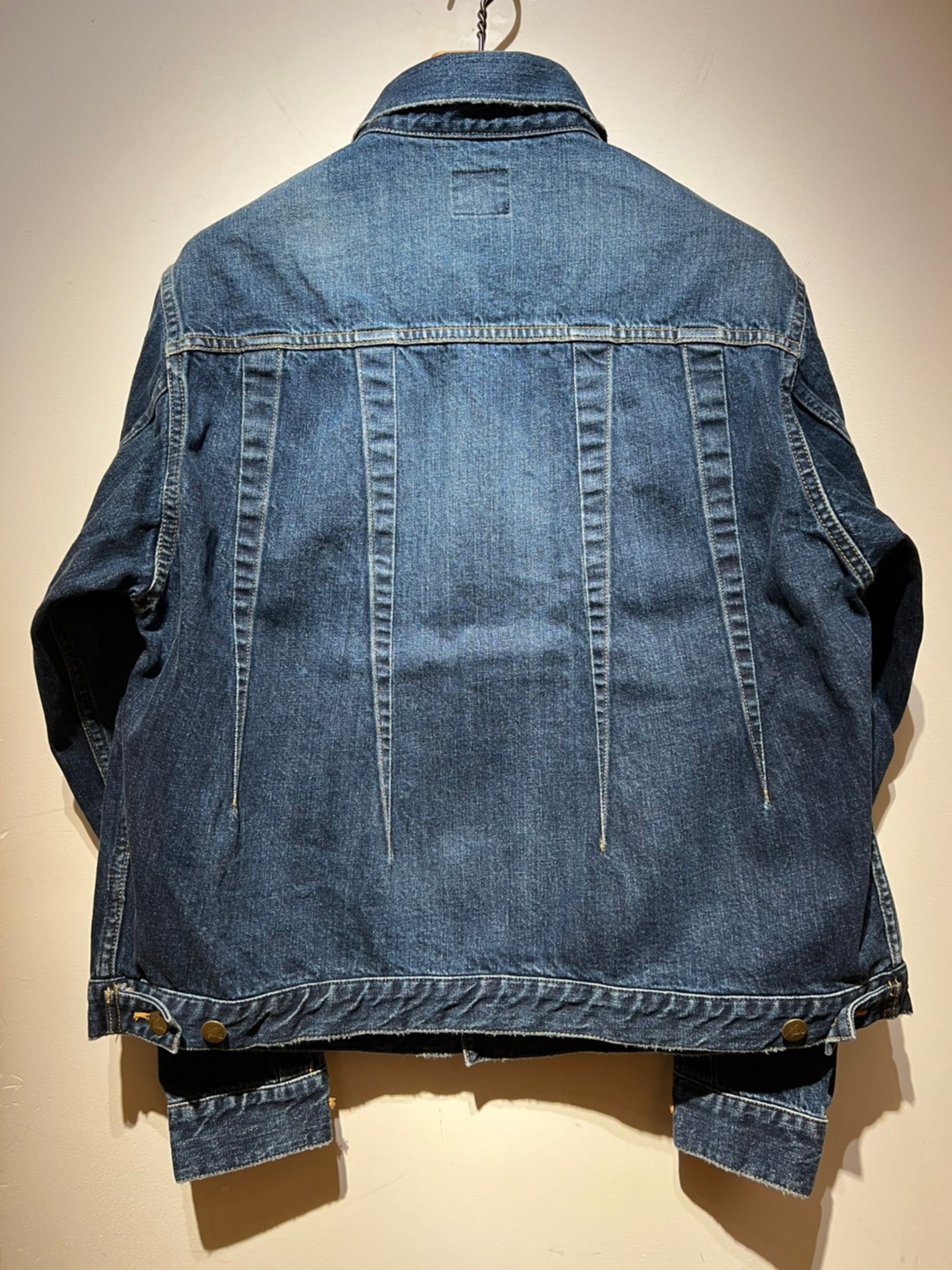 フロント、バック、袖部分に、立体的なシルエットを生むダーツを施した定番のジーンジャケット。リアリティのある色落ちがヴィンテージ感漂わせる12オンスデニムを使用した一着です。全体的に丸みのある独特のAラインシルエットが、ベーシックなジーンジャケットを個性的なアイテムへと変化させています。締め付けの少ない、ゆとりのある着用感も魅力。