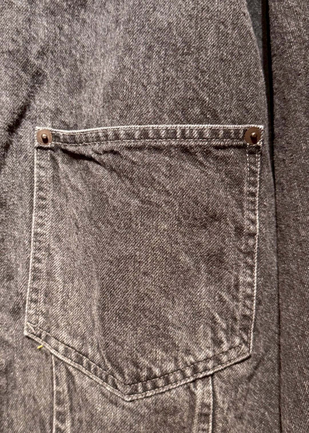 フロント、バック、袖部分に、立体的なシルエットを生むダーツを施した定番のジーンジャケット。リアリティのある色落ちがヴィンテージ感漂わせる12オンスデニムを使用した一着です。全体的に丸みのある独特のAラインシルエットが、ベーシックなジーンジャケットを個性的なアイテムへと変化させています。締め付けの少ない、ゆとりのある着用感も魅力。