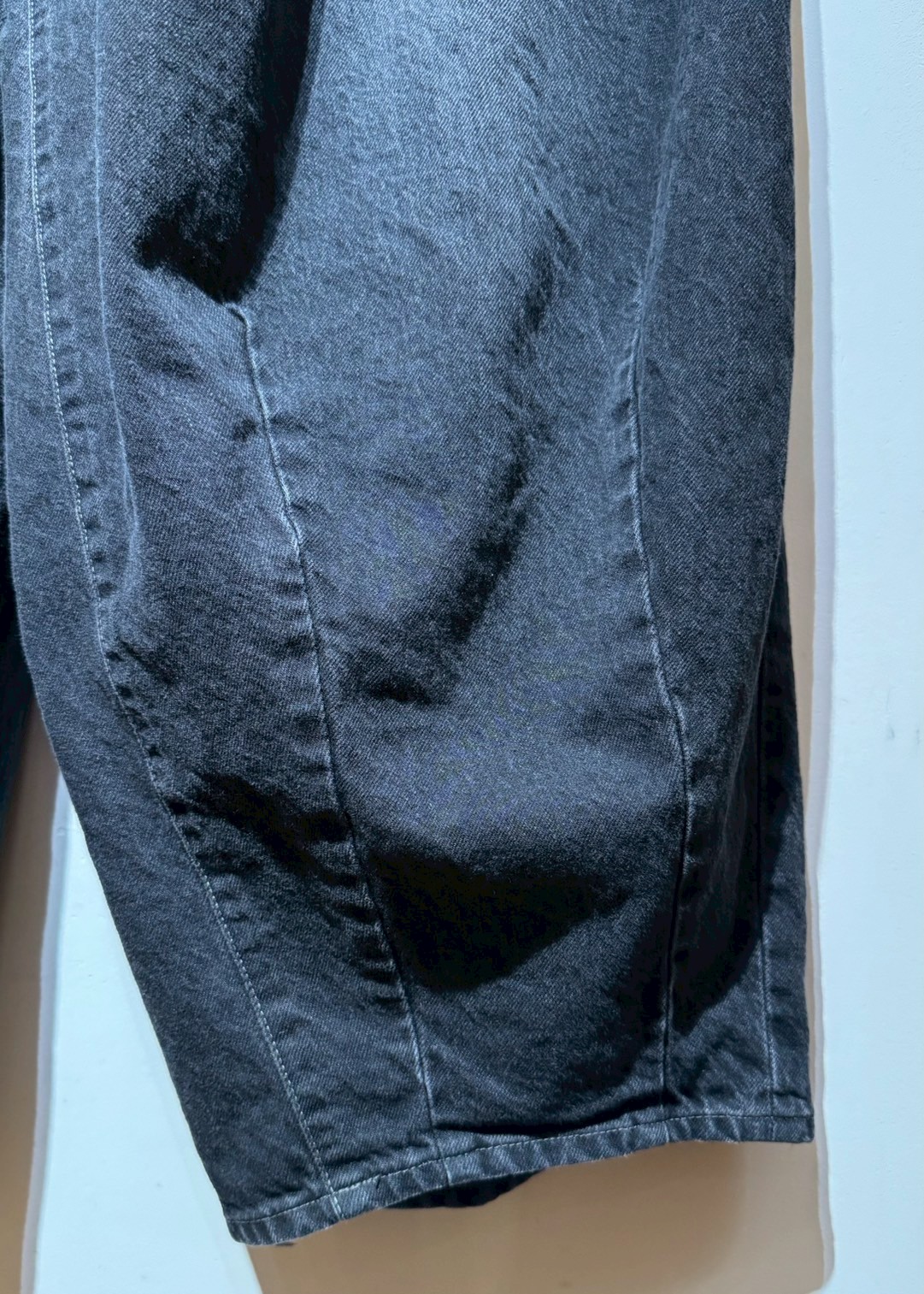ウエストと裾のダーツ処理によってフロントが大きく膨らんだ、独特のシルエットが魅力の人気アイテムH.D. PANT。リラックス感のあるシルエットと、開放感のあるストレスのない履き心地も魅力です。リアリティのある色落ちがヴィンテージ感漂わせる12オンスウォッシュドデニムを使用し、5ポケットジーンズのデザインに落し込んだ一本。