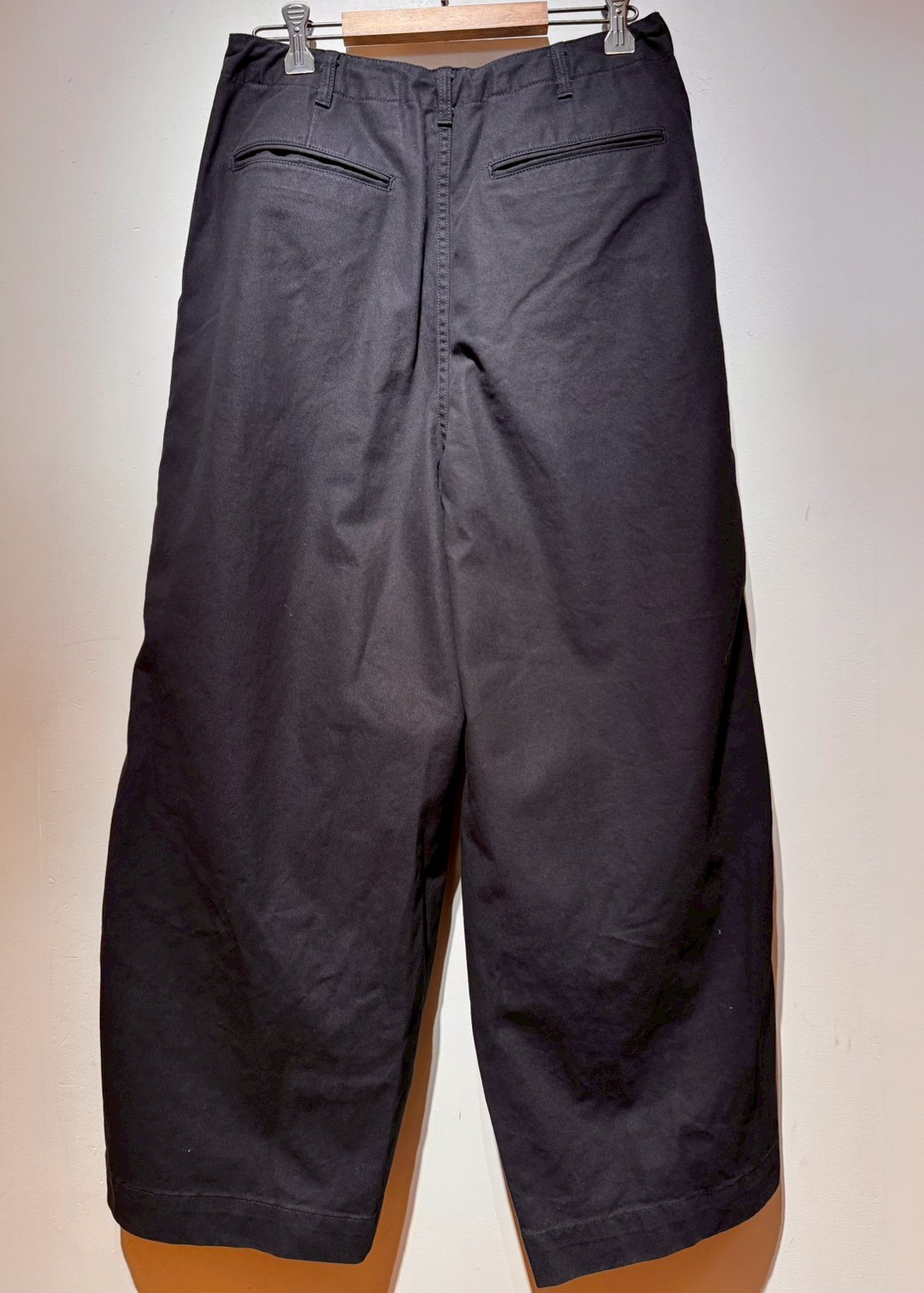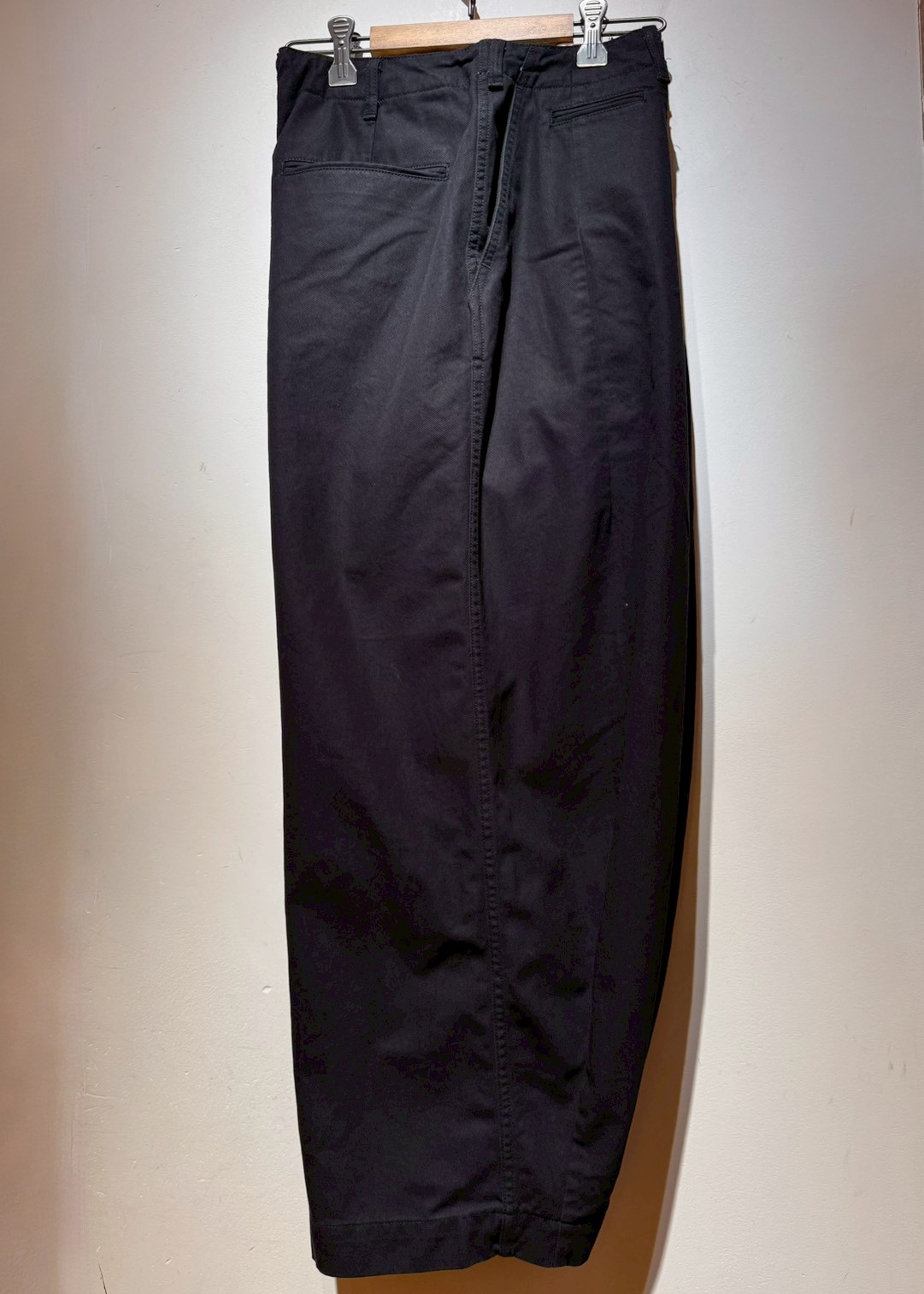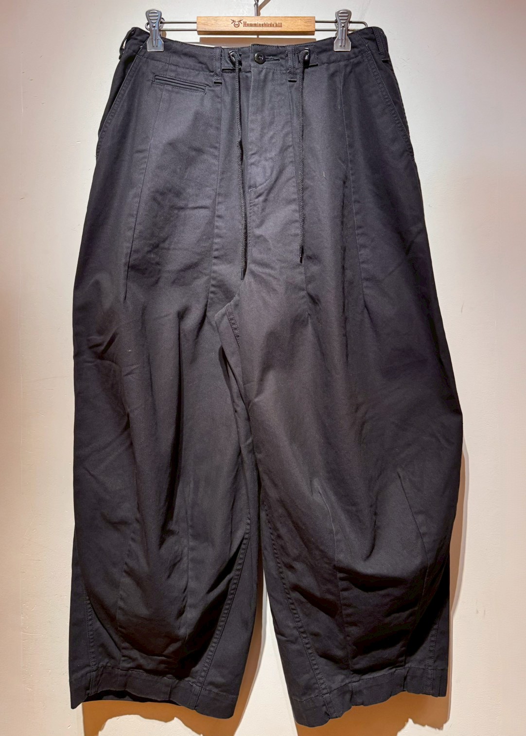 ウエストと裾のダーツ処理によりフロントが大きくふくらんだ独特のシルエットが魅力の人気アイテムH.D. パンツ。リラックス感のあるワイドなシルエットで、締め付けのない開放感のある履き心地も魅力的です。さまざまなデザイン・バリエーションで展開されていますが、シンプルなチノトラウザーズをベースにしたベーシックなデザインとなっています。