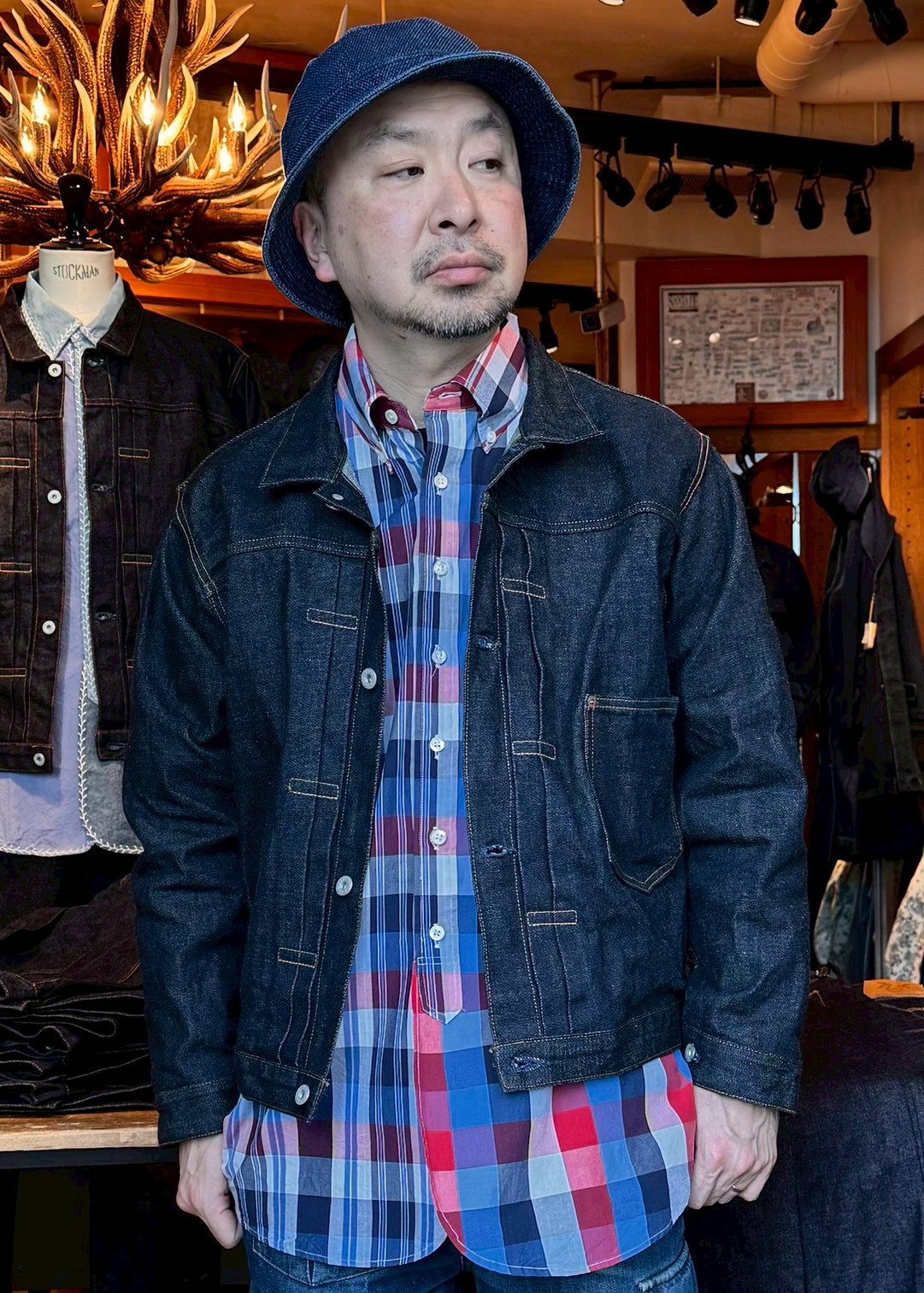 当時の大戦モデルのリプロダクト生地を使用し、デニムの産地、岡山で縫製しています!