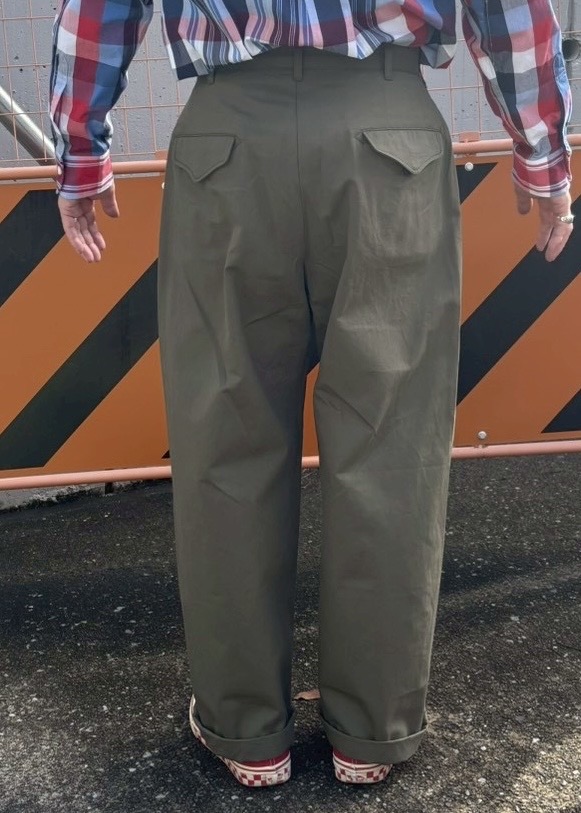 表面を研磨し微細な起毛を施したサンデットクロスを使用することで長年着込んだようなビンテージ感のある一本に仕上がりました。