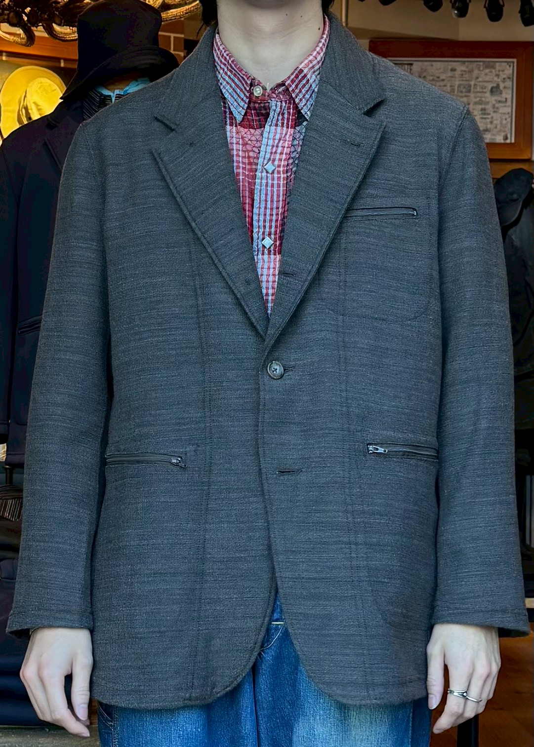 Engineered Garments Andover Jacket - Lt.Wool Striped Herringbone - Gray
