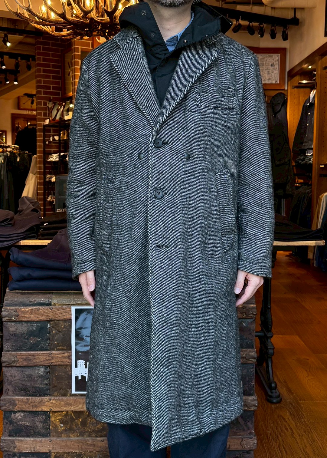 Engineered Garments Chester Coat - Wool Shaggy Twill - Black