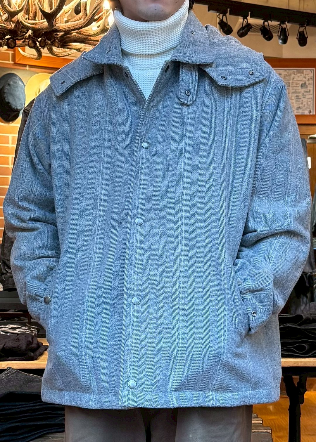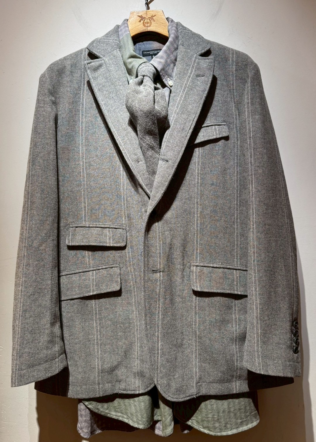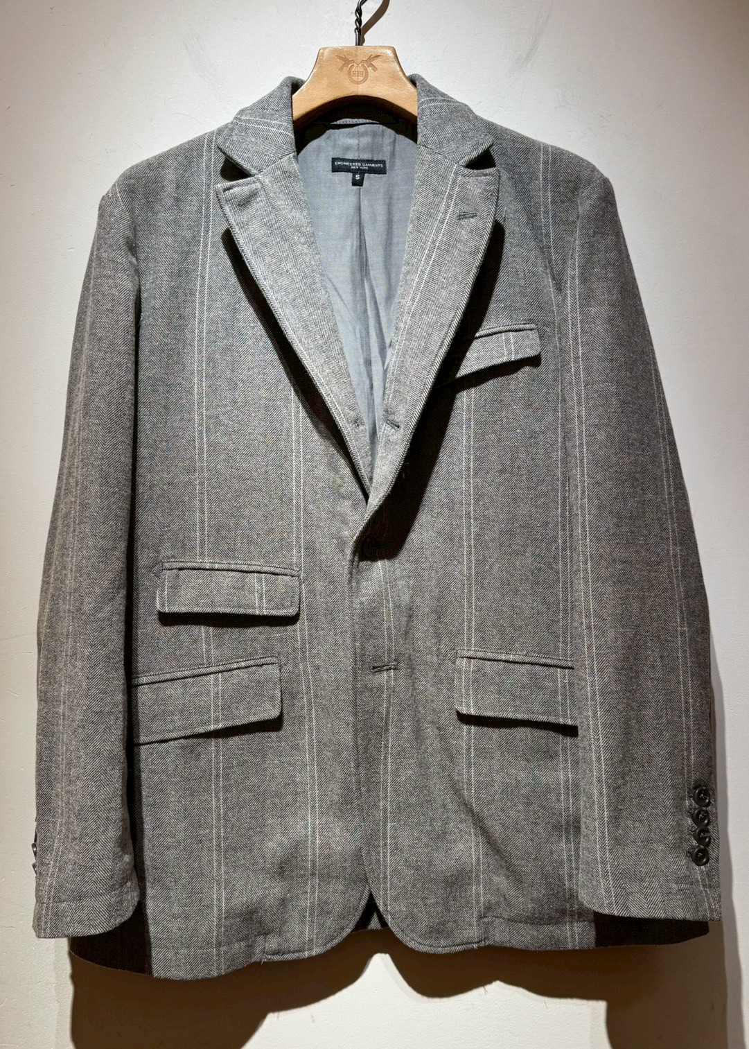 Engineered Garments Wind Breaker - Wool Striped Herringbone - Lt.Gray