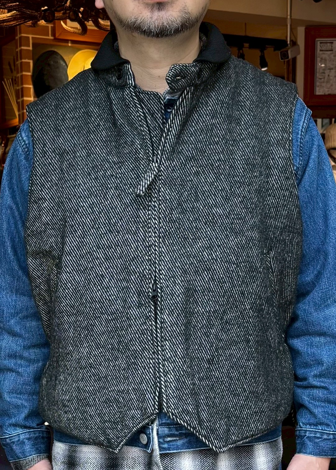 Engineered Garments LL Vest - Wool Shaggy Twill - Black