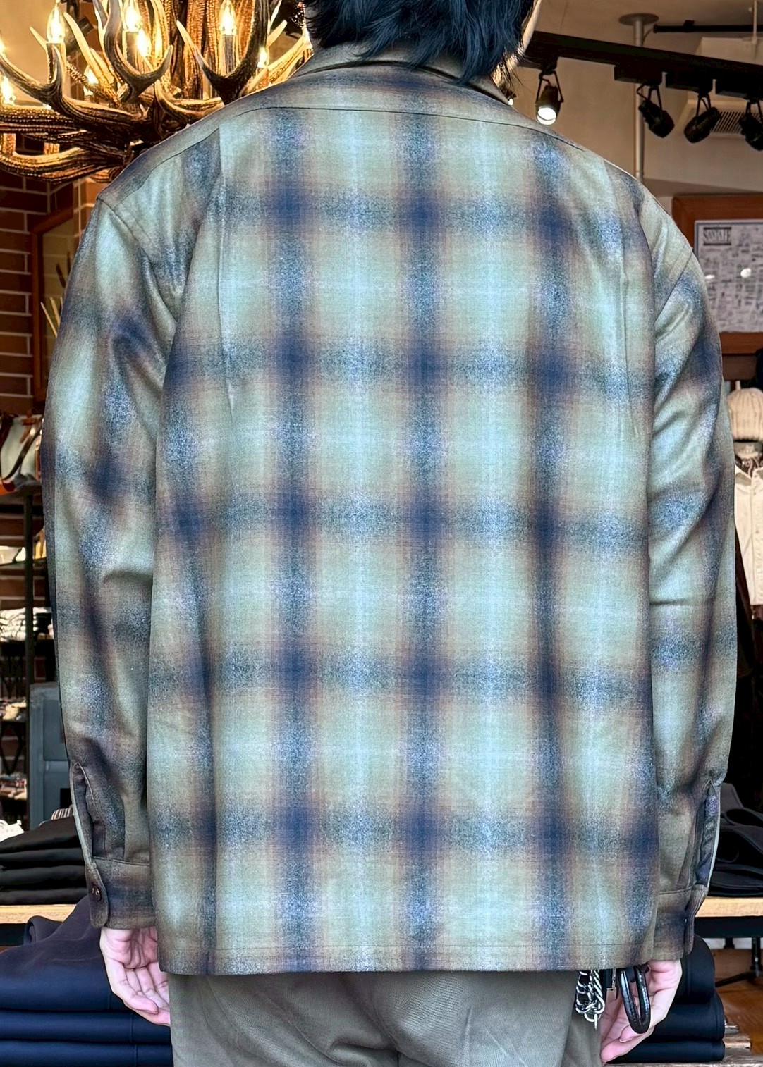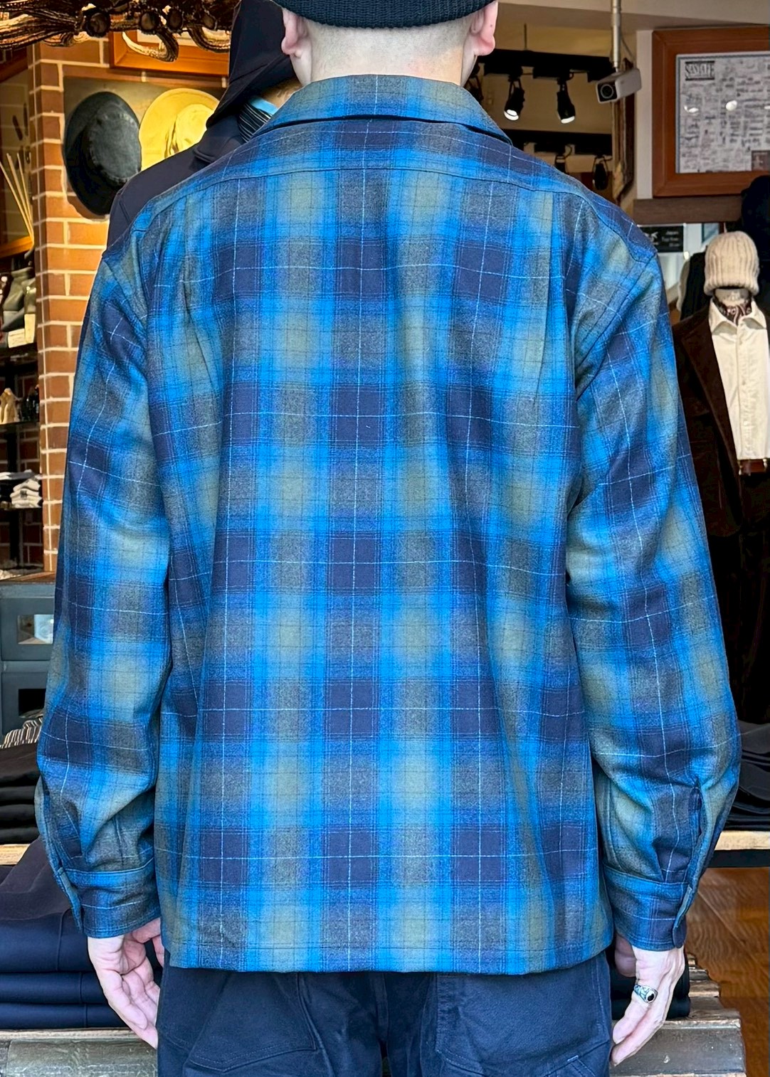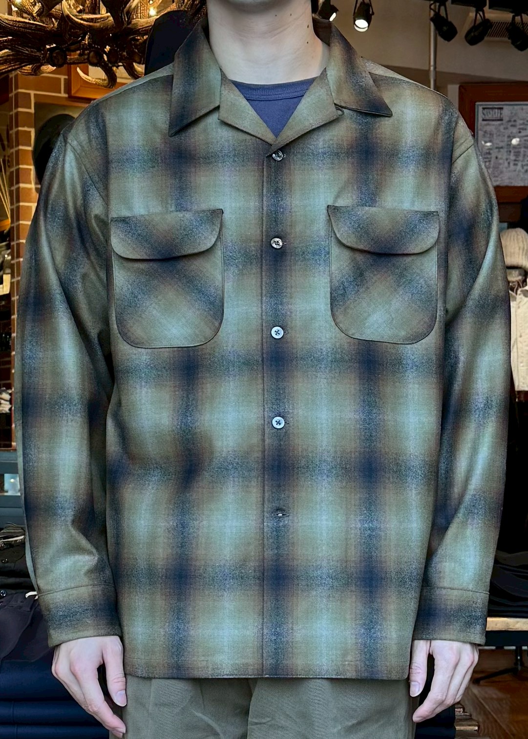 PENDLETON - Open Collar Shirt - Ombre Check - Kahki/Navy